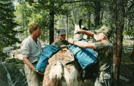 On this successful rifle hunt in the Colorado Rockies, the llamas packed out one bull elk and four mulies. We were back into the wilderness over two mountain passes above 11,500 feet in elevation. The llamas never complained a bit. Can you say that about your hunting buddies?